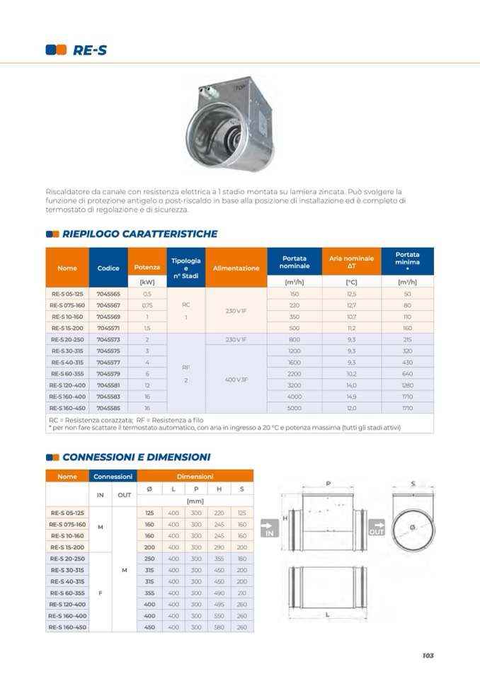 Riscaldatore da canale con resistenza elettrica a 1 stadio montata su lamiera zincata. Può svolgere la
