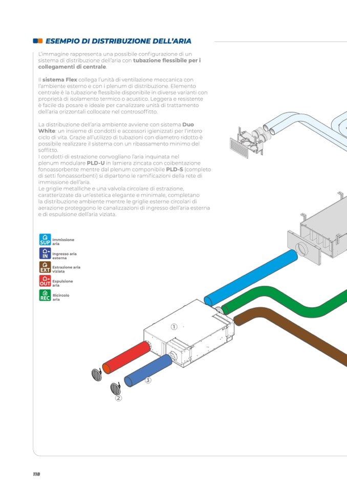 l’ambiente esterno e con i plenum di distribuzione. Elemento