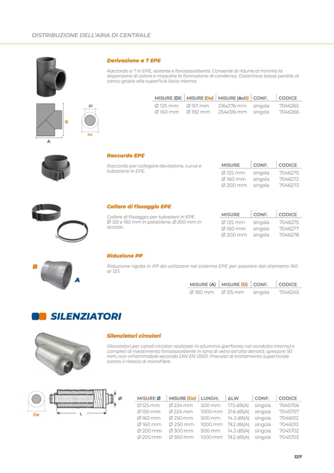 Ø 125 e 160 mm in polietilene, Ø 200 mm in