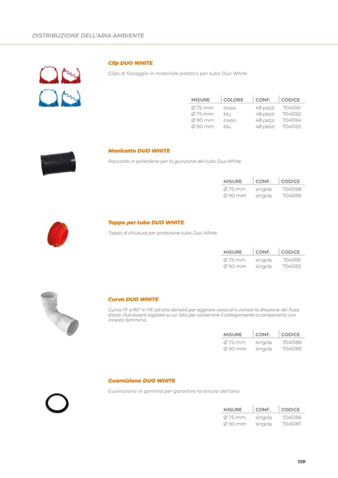 Clips di fissaggio in materiale plastico per tubo Duo White.