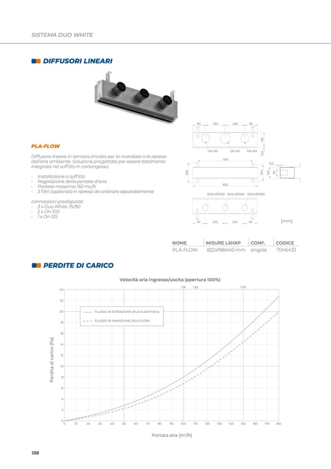 Diffusore lineare in lamiera zincata per la mandata o la ripresa