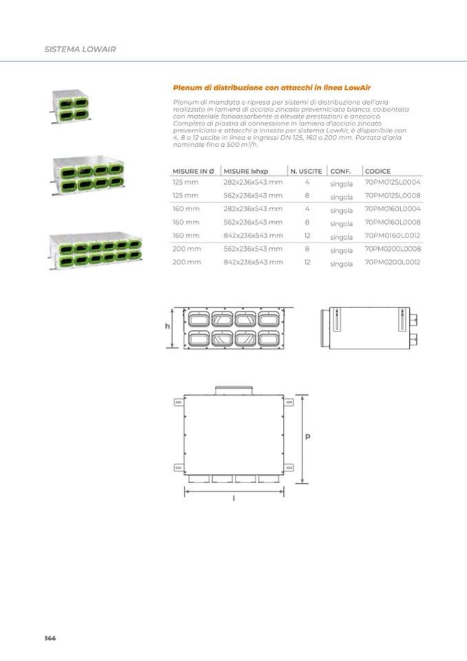 4, 8 o 12 uscite in linea e ingressi DN 125, 160 o 200 mm. Portata d’aria