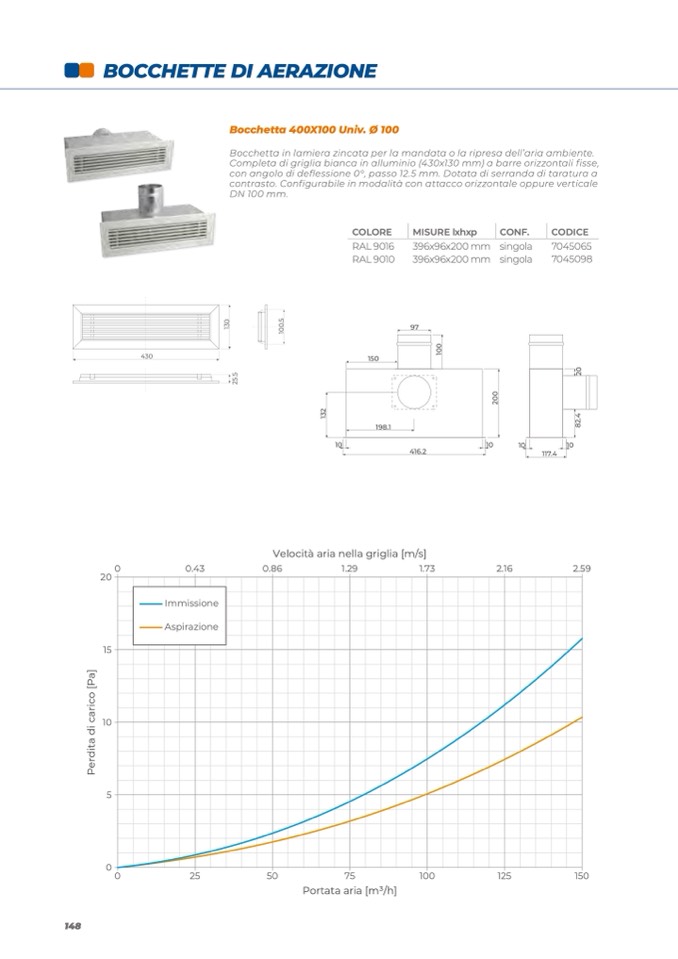 Bocchetta in lamiera zincata per la mandata o la ripresa dell’aria ambiente.