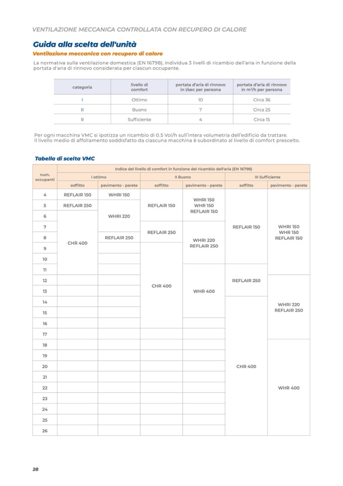 Per ogni macchina VMC si ipotizza un ricambio di 0.5 Vol/h sull’intera volumetria dell’edificio da trattare.