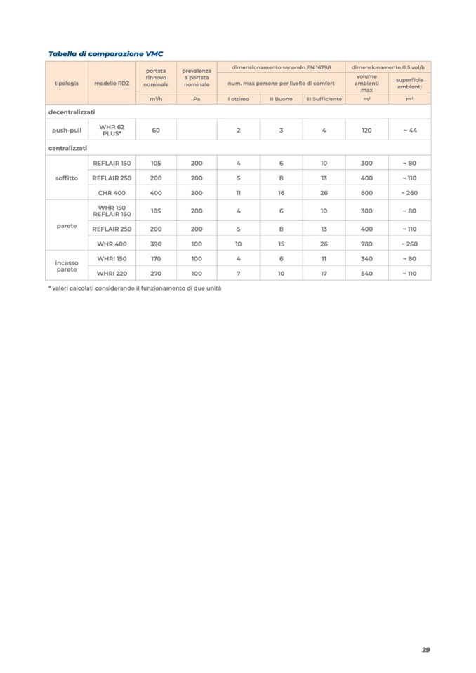* valori calcolati considerando il funzionamento di due unità