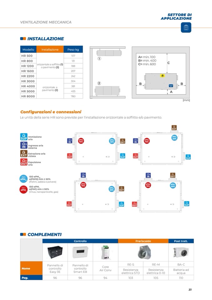 Le unità della serie HR sono previste per l’installazione orizzontale a soffitto e/o pavimento.