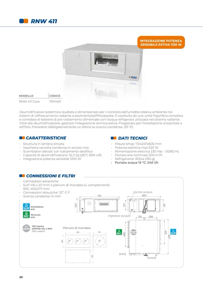 Oltre alla deumidificazione, gestisce l’integrazione termica estiva. Progettato per l’installazione orizzontale a