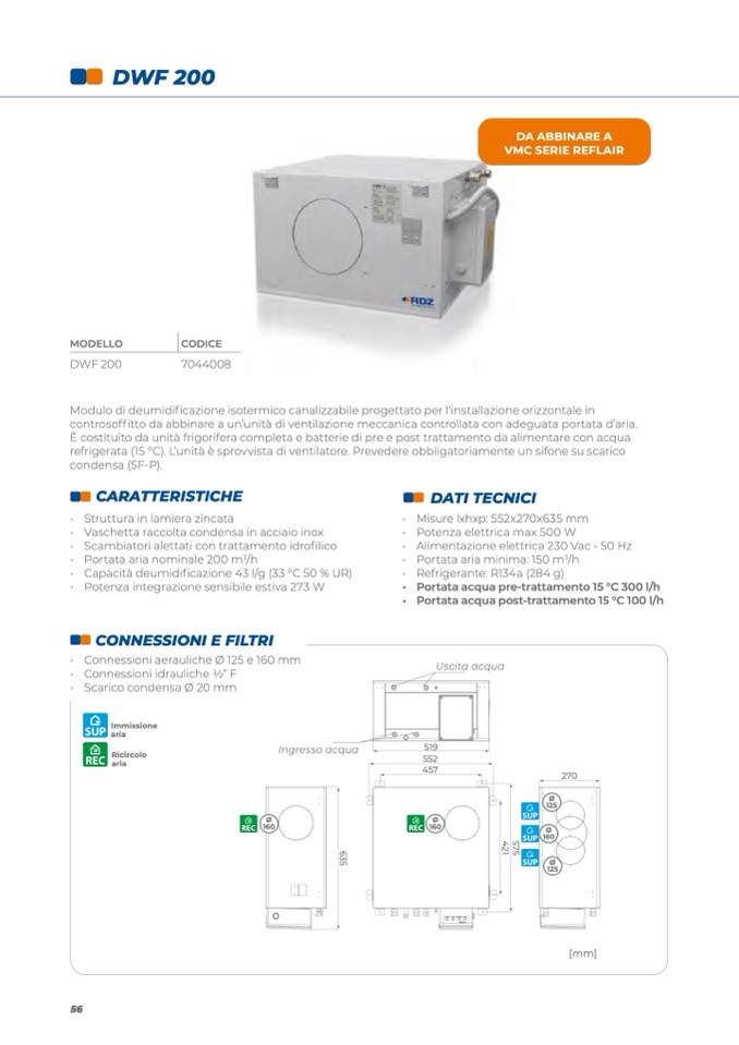 • Connessioni aerauliche Ø 125 e 160 mm