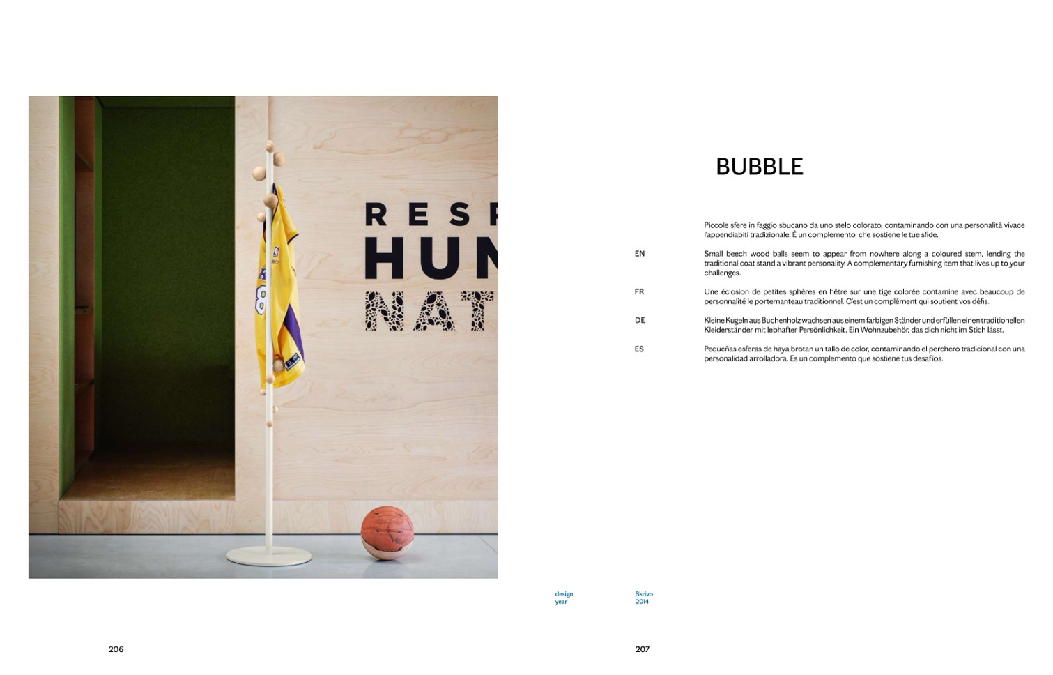 Piccole sfere in faggio sbucano da uno stelo colorato, contaminando con una personalità vivace