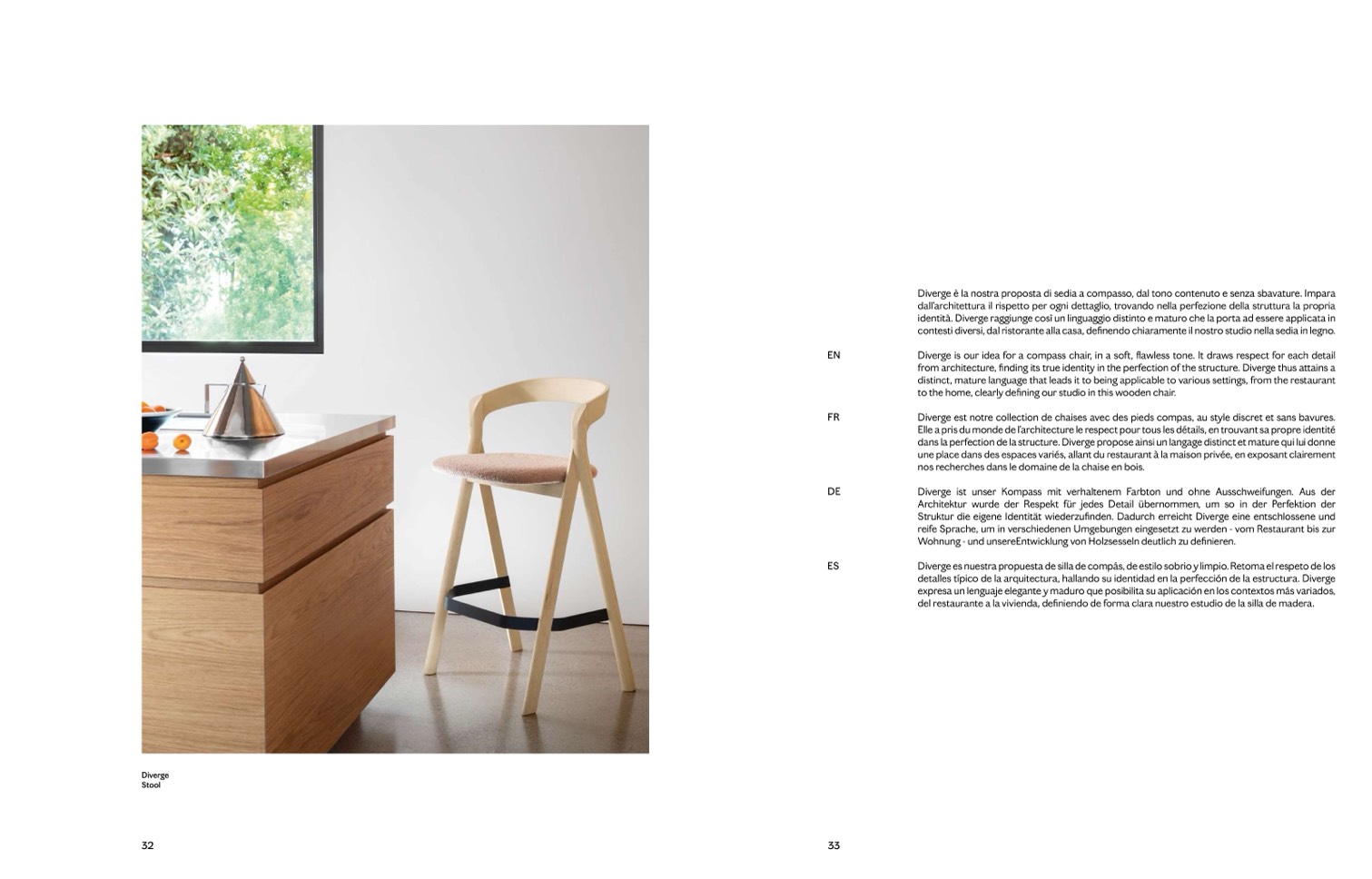 Diverge is our idea for a compass chair, in a soft, flawless tone. It draws respect for each detail