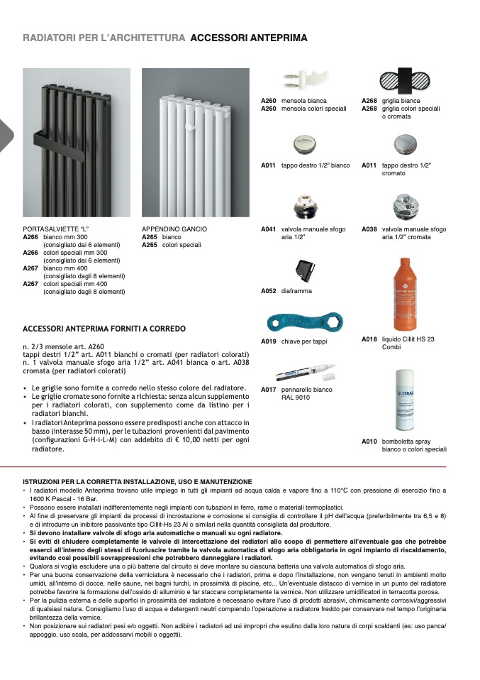 RADIATORI PER L’ARCHITETTURA ACCESSORI ANTEPRIMA