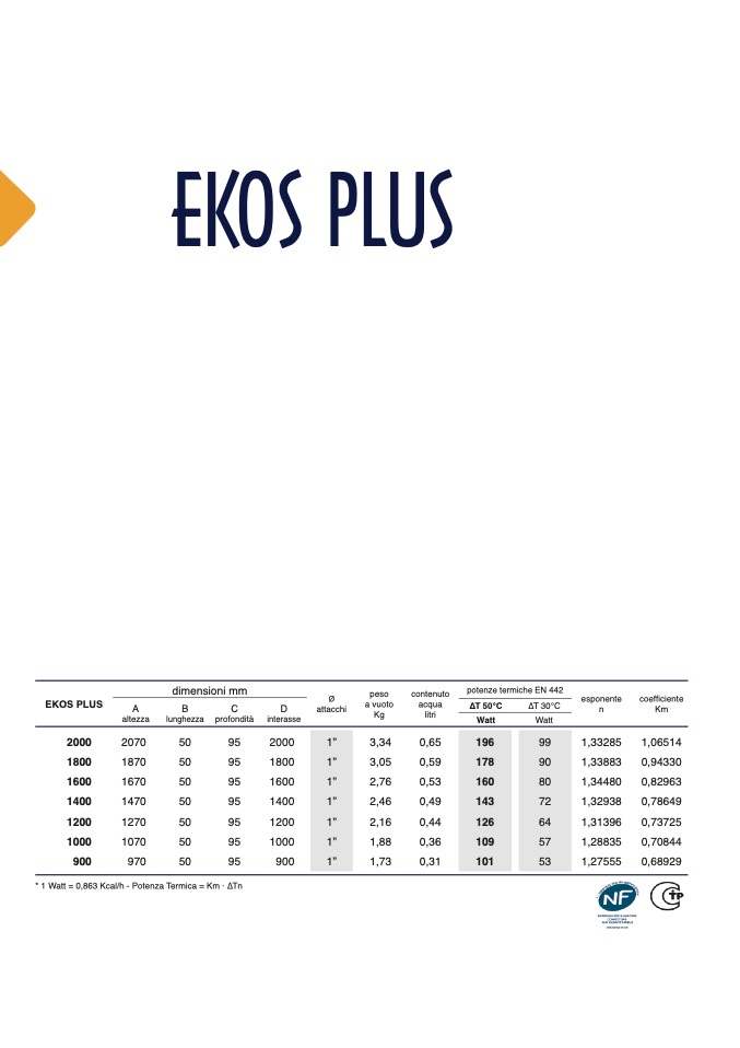 * 1 Watt = 0,863 Kcal/h - Potenza Termica = Km · ∆T