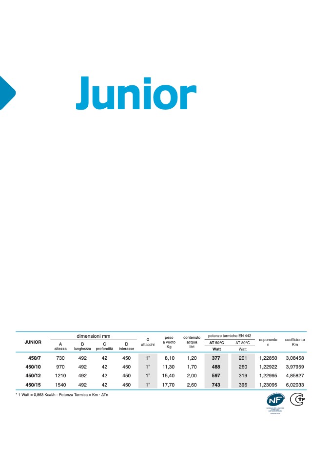* 1 Watt = 0,863 Kcal/h - Potenza Termica = Km · ∆T