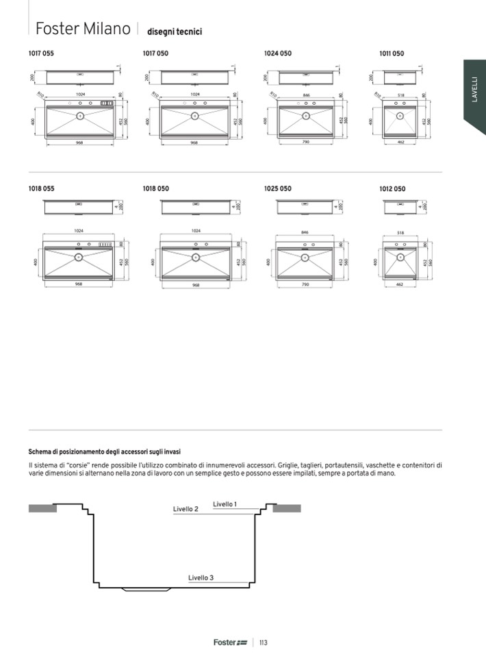 Il sistema di “corsie” rende possibile l’utilizzo combinato di innumerevoli accessori. Griglie, taglieri, portautensili, vaschette e contenitori di