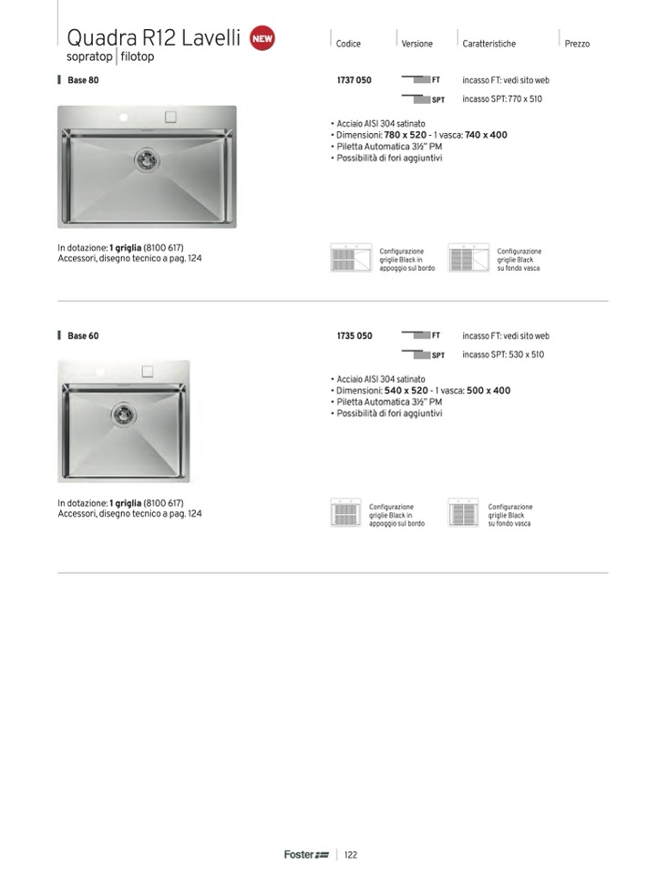 • Acciaio AISI 304 satinato