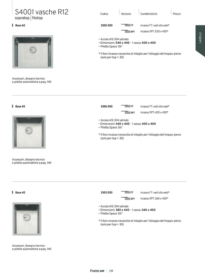 • Dimensioni: 380 x 440 - 1 vasca: 340 x 400