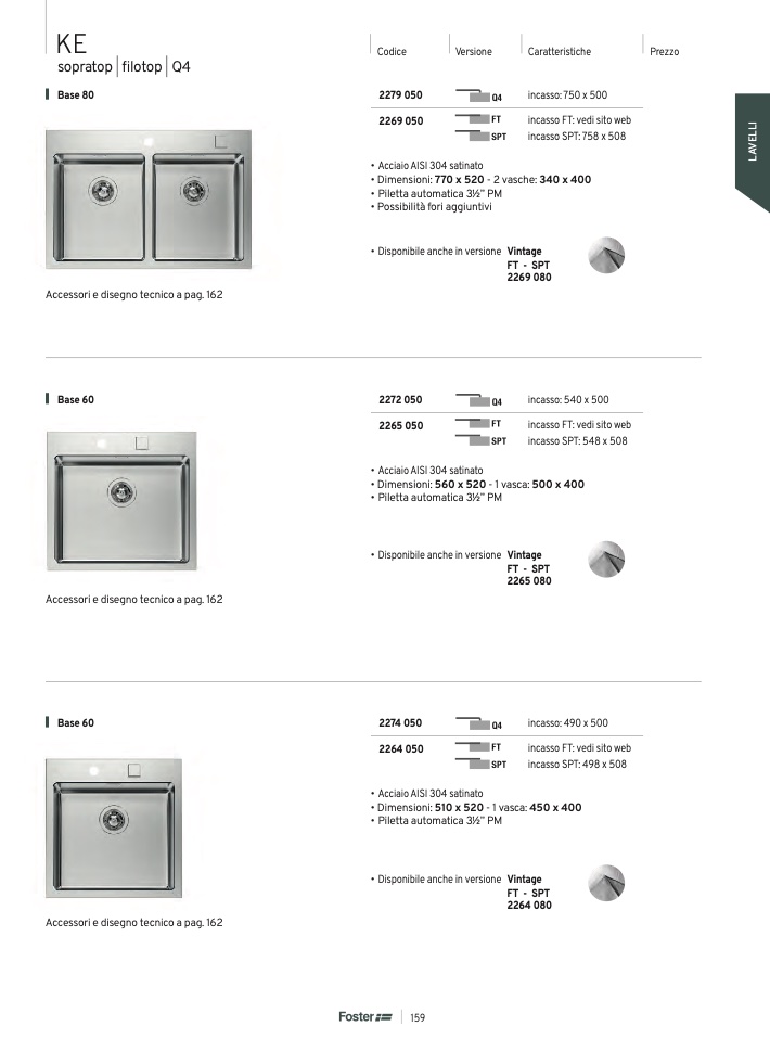 • Dimensioni: 770 x 520 - 2 vasche: 340 x 400