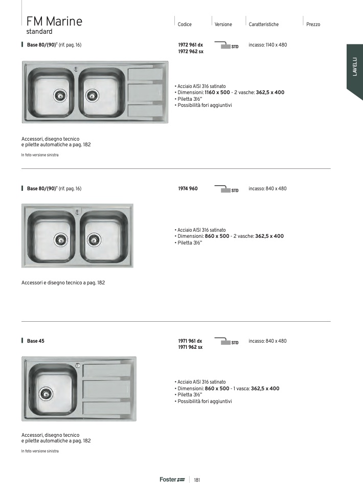 • Dimensioni: 1160 x 500 - 2 vasche: 362,5 x 400