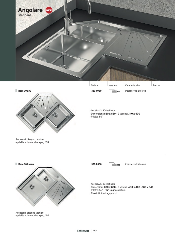 • Dimensioni: 830 x 830 - 2 vasche: 340 x 400
