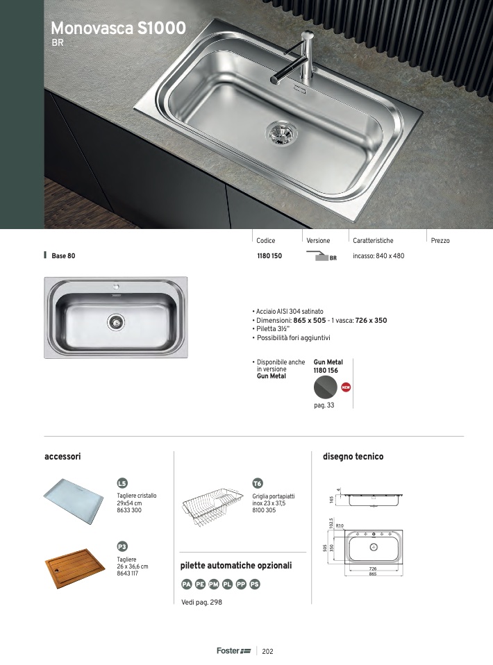 • Dimensioni: 865 x 505 - 1 vasca: 726 x 350