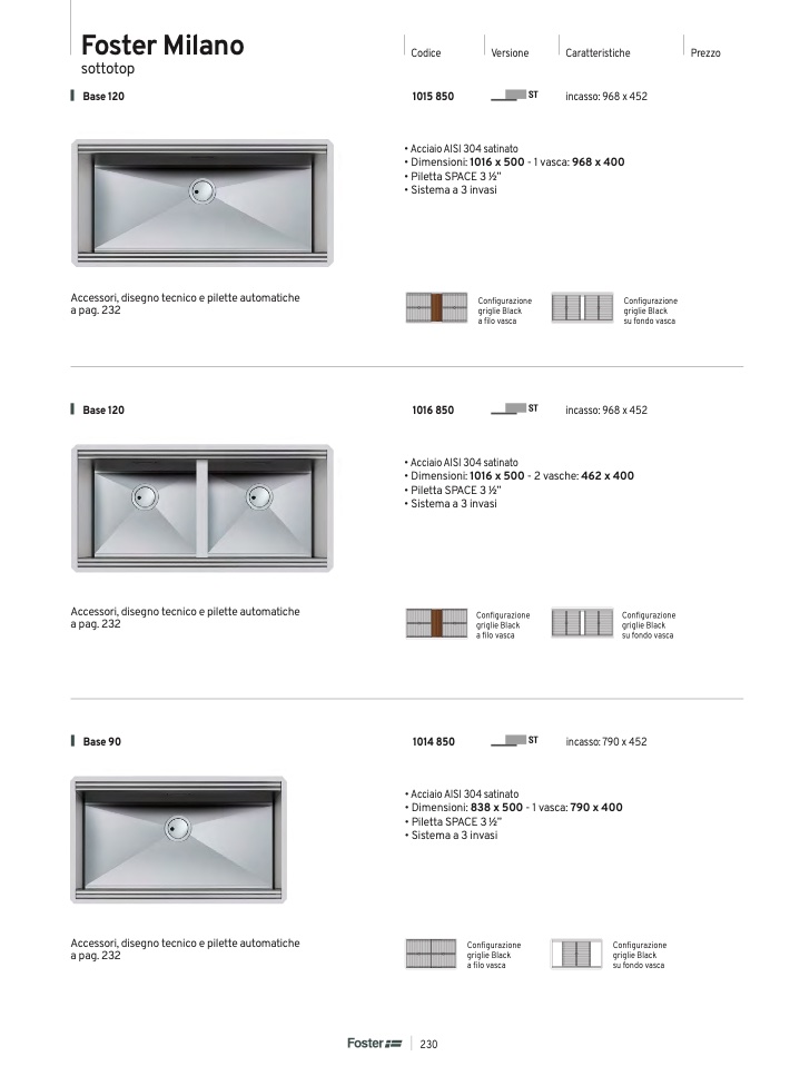 • Dimensioni: 1016 x 500 - 2 vasche: 462 x 400