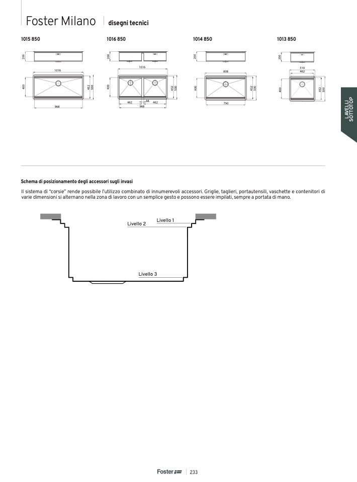 Il sistema di “corsie” rende possibile l’utilizzo combinato di innumerevoli accessori. Griglie, taglieri, portautensili, vaschette e contenitori di