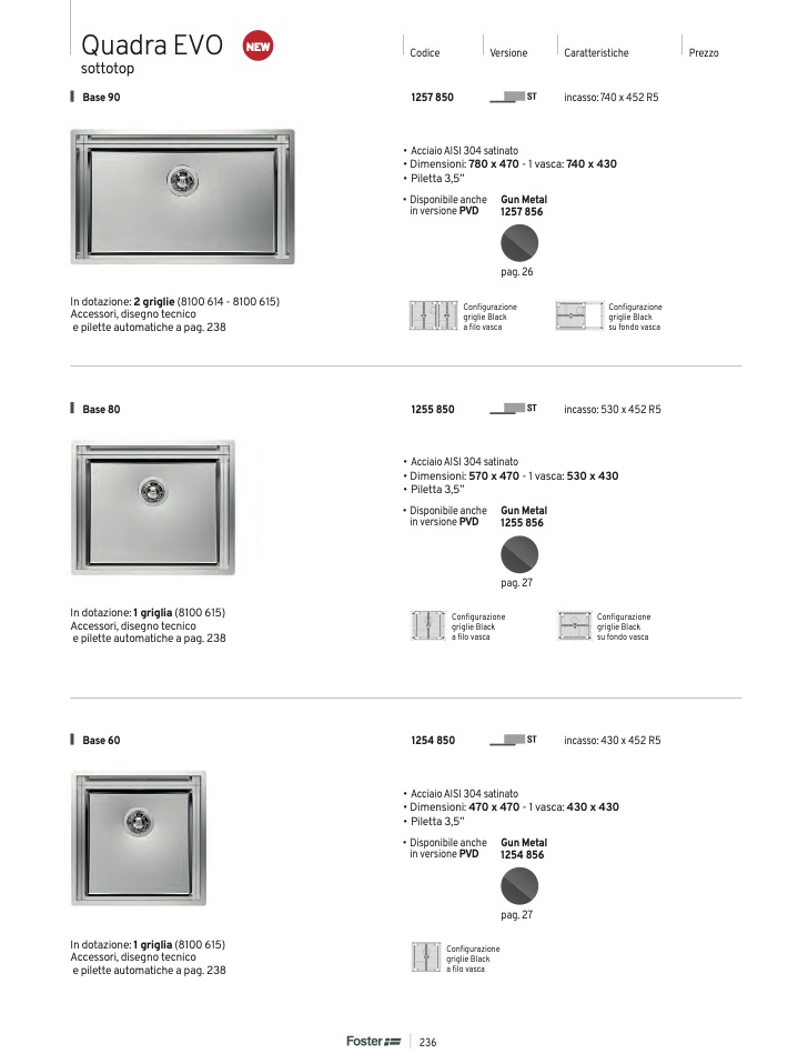 • Dimensioni: 470 x 470 - 1 vasca: 430 x 430