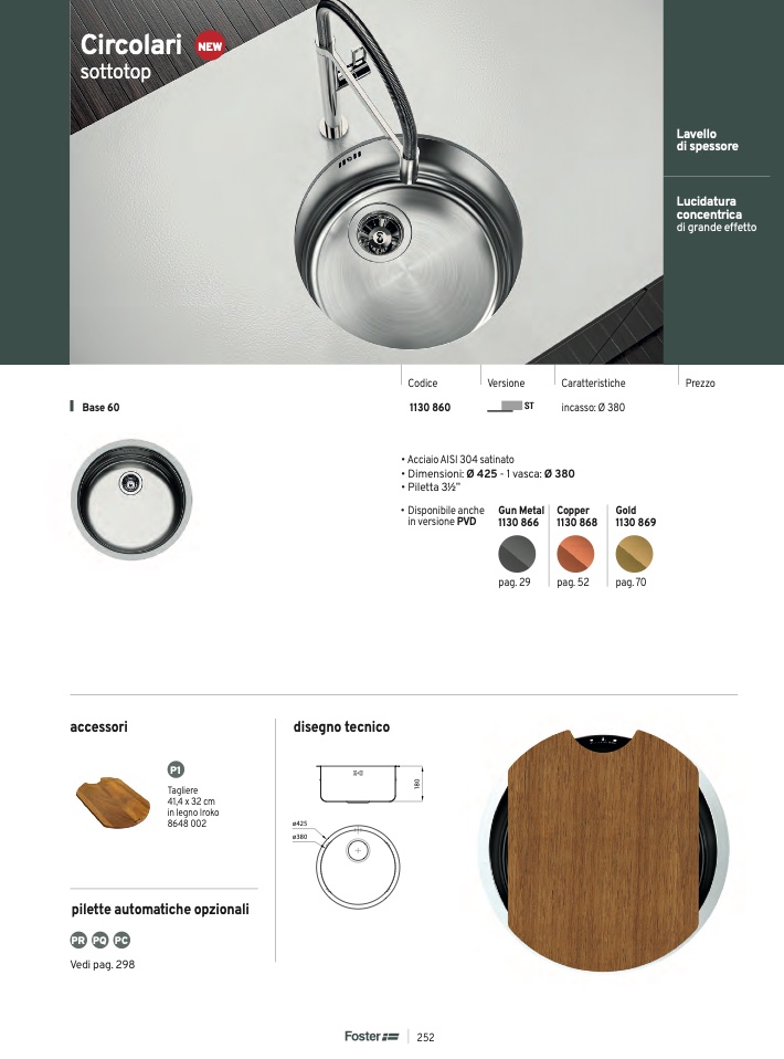 • Dimensioni: Ø 425 - 1 vasca: Ø 380