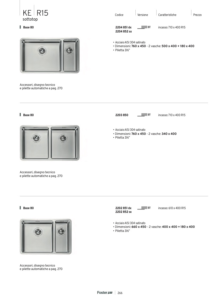 • Dimensioni: 660 x 450 - 2 vasche: 400 x 400 + 180 x 400