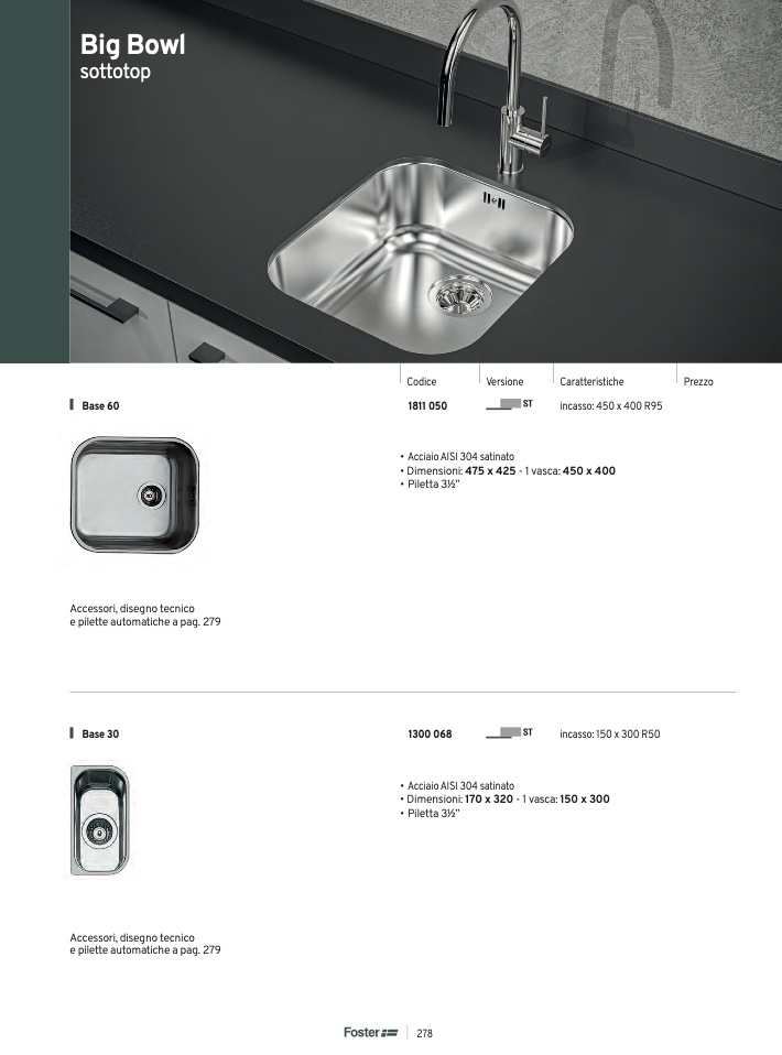 • Acciaio AISI 304 satinato