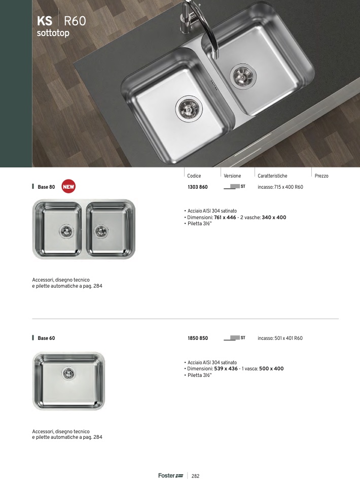 • Dimensioni: 761 x 446 - 2 vasche: 340 x 400