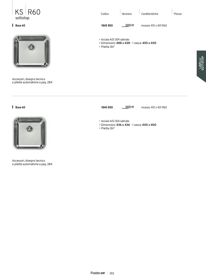 • Dimensioni: 436 x 436 - 1 vasca: 400 x 400