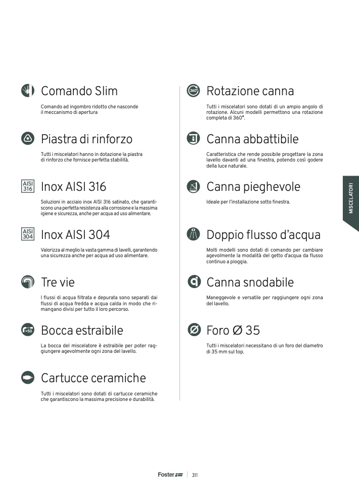 Tutti i miscelatori sono dotati di un ampio angolo di