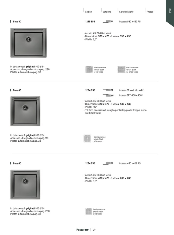 • Dimensioni: 470 x 470 - 1 vasca: 430 x 430