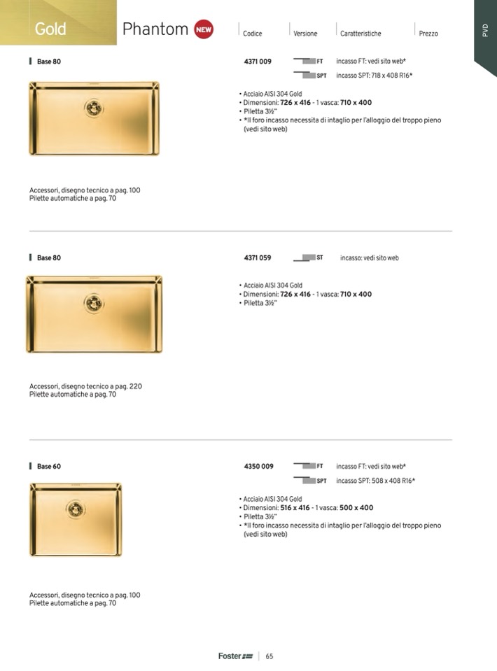 • Acciaio AISI 304 Gold