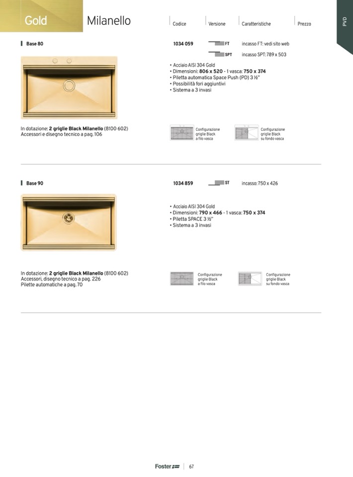 In dotazione: 2 griglie Black Milanello (8100 602)