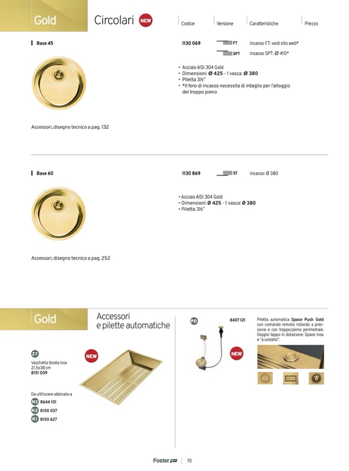 • Acciaio AISI 304 Gold