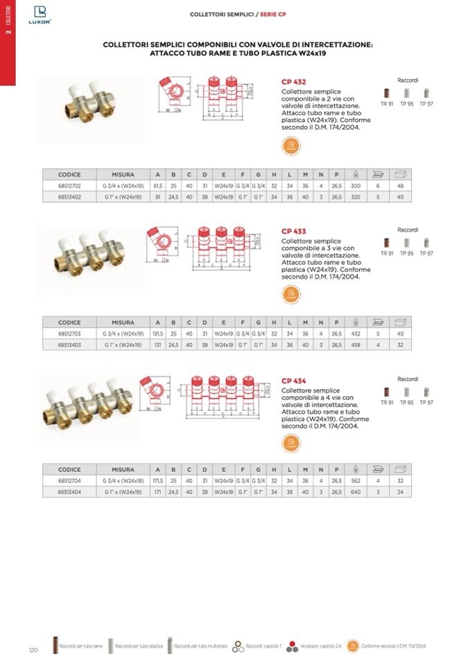 COLLETTORI SEMPLICI COMPONIBILI CON VALVOLE DI INTERCETTAZIONE:
