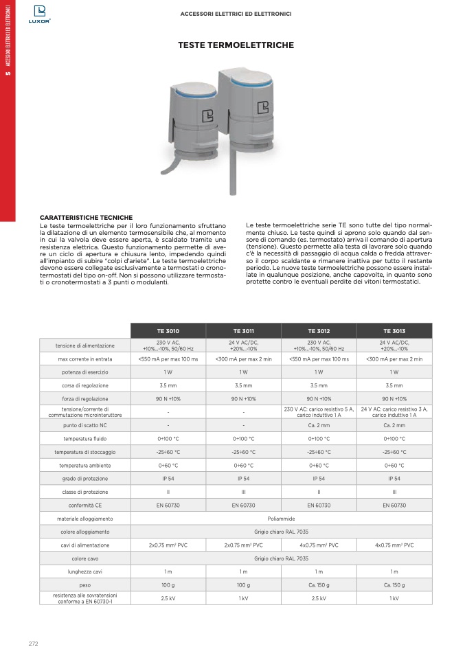 Le teste termoelettriche serie TE sono tutte del tipo normal-