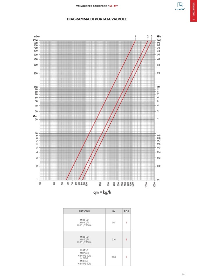 DIAGRAMMA DI PORTATA VALVOLE