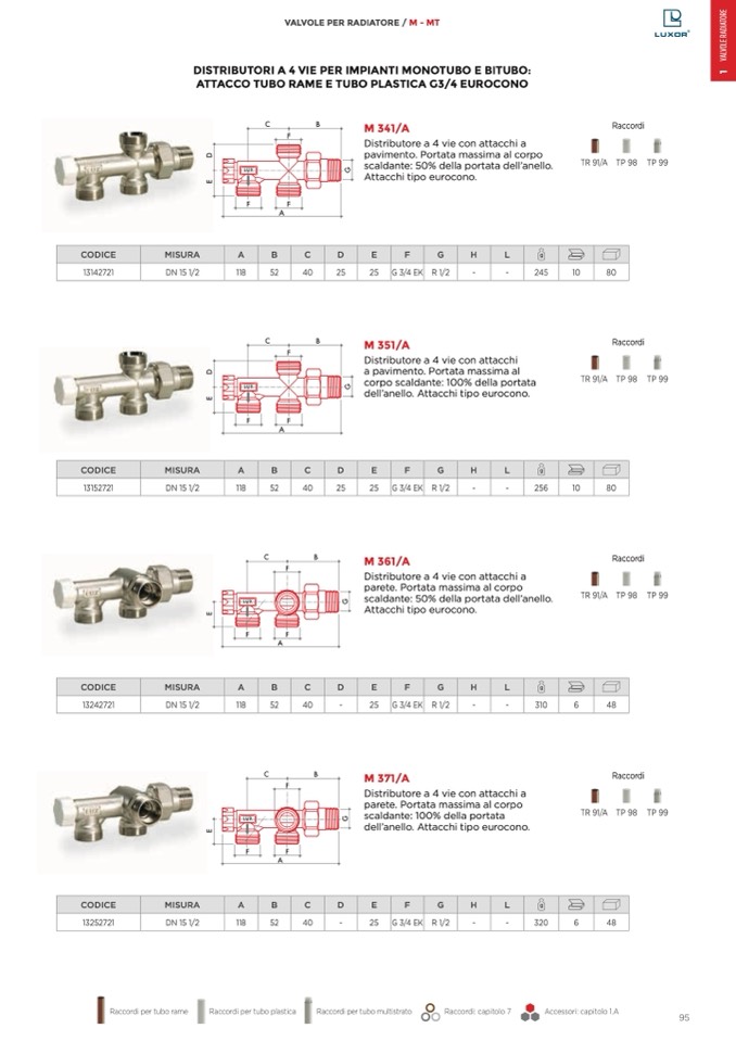 DISTRIBUTORI A 4 VIE PER IMPIANTI MONOTUBO E BITUBO: