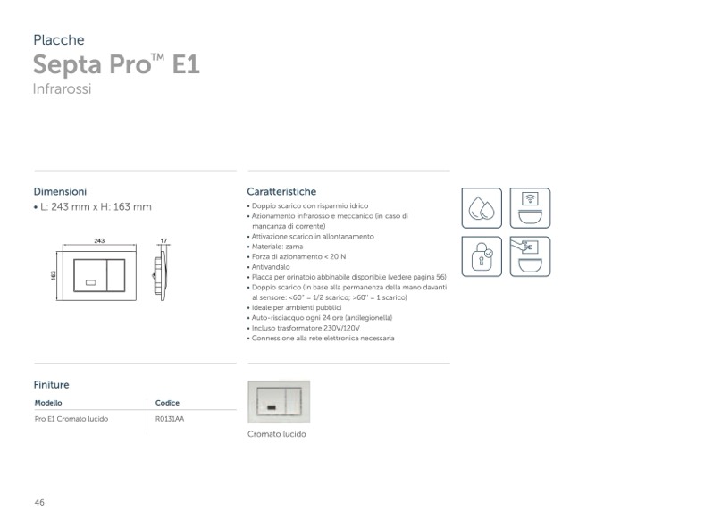 • Placca per orinatoio abbinabile disponibile (vedere pagina 56)