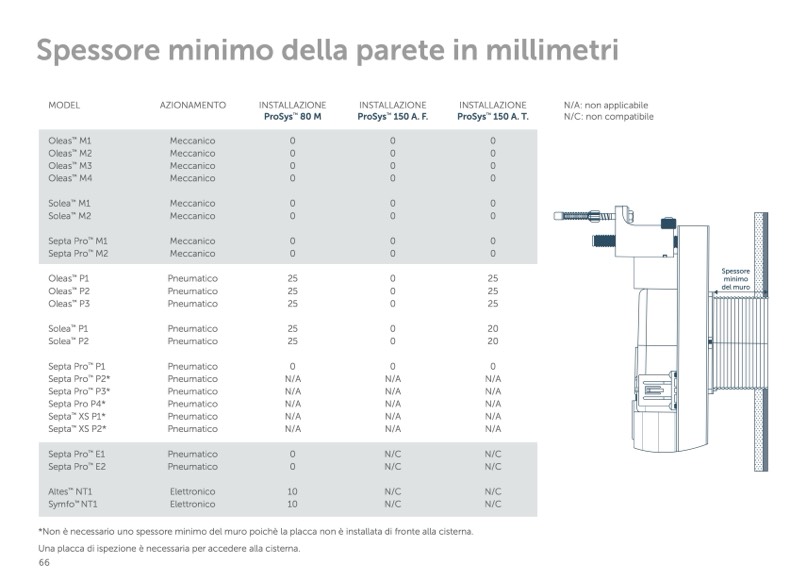 *Non è necessario uno spessore minimo del muro poichè la placca non è installata