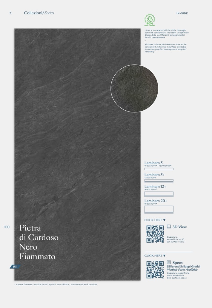 • Lastra formato “uscita forno” quindi non rifilata | Untrimmed end product