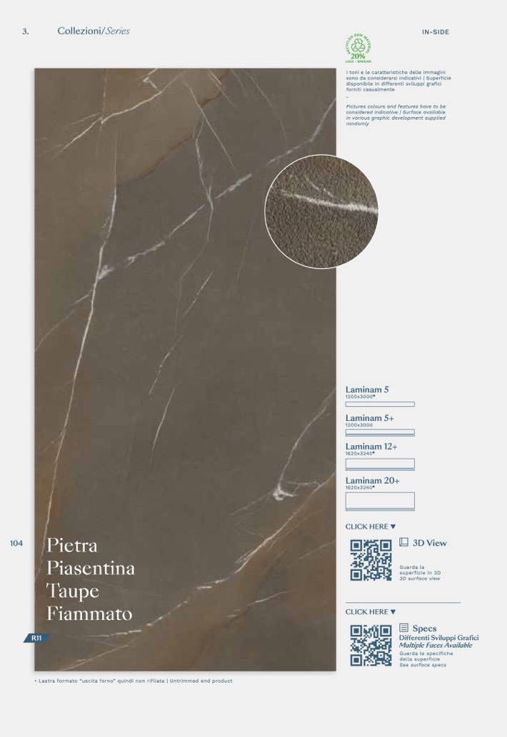 • Lastra formato “uscita forno” quindi non rifilata | Untrimmed end product