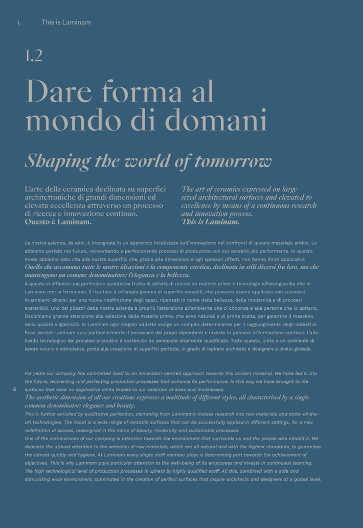 objectives. This is why Laminam pays particular attention to the well-being of its employees and invests in continuous learning.
