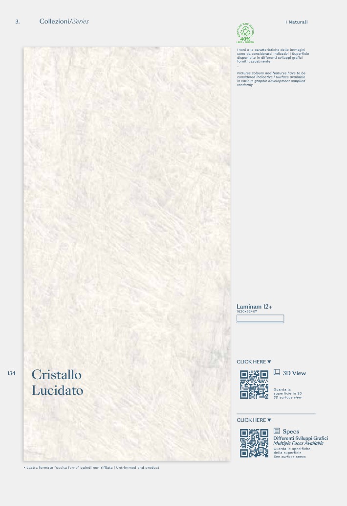 • Lastra formato “uscita forno” quindi non rifilata | Untrimmed end product