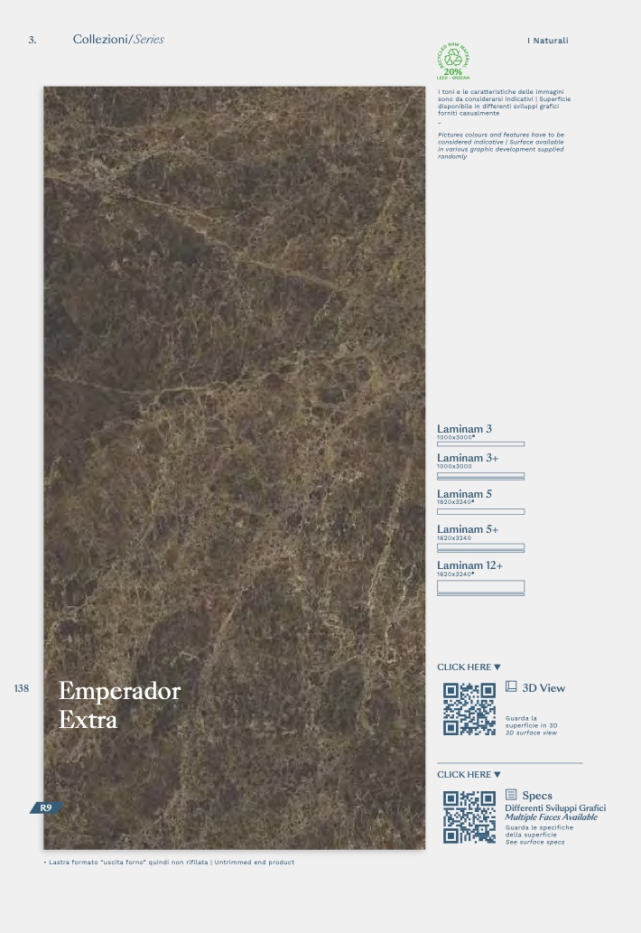 • Lastra formato “uscita forno” quindi non rifilata | Untrimmed end product