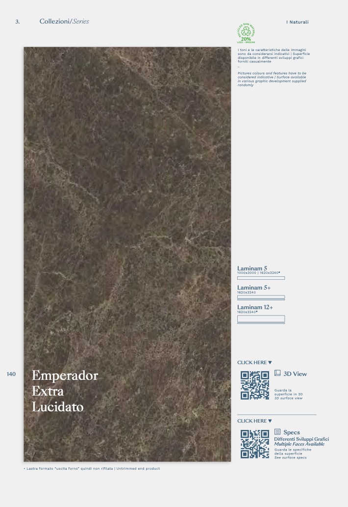 • Lastra formato “uscita forno” quindi non rifilata | Untrimmed end product