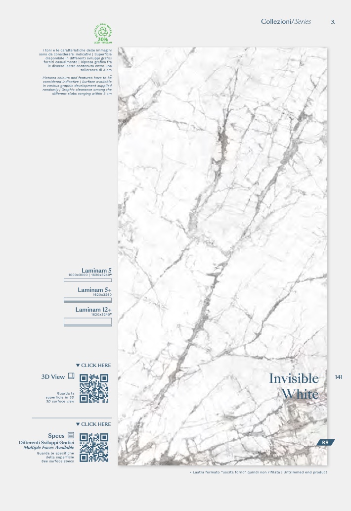 • Lastra formato “uscita forno” quindi non rifilata | Untrimmed end product